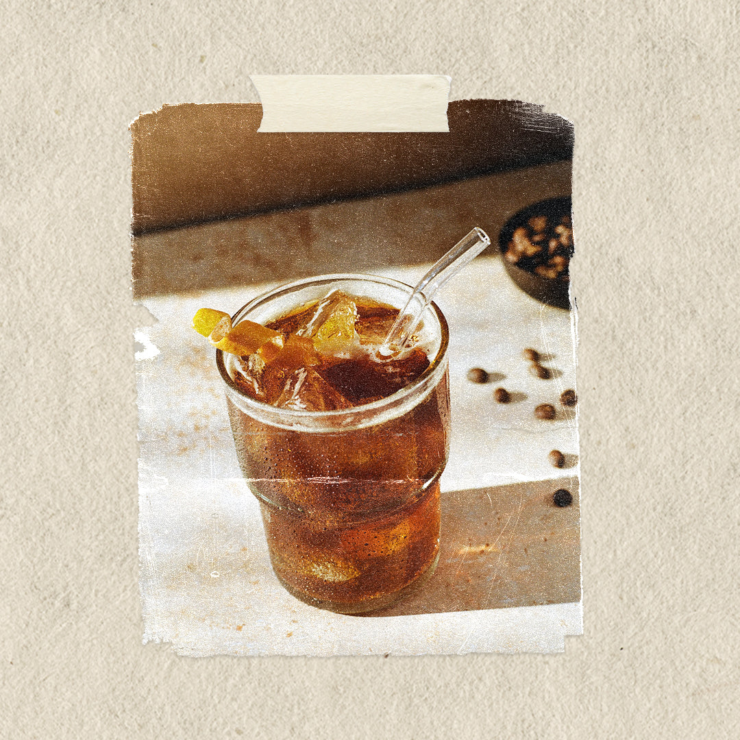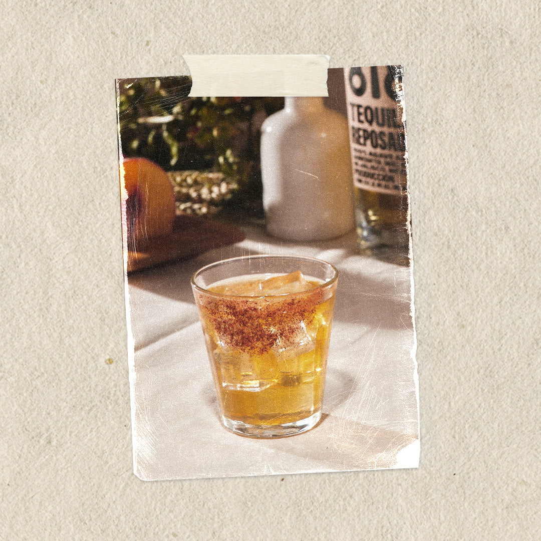 - (3) DOUBLE STRAIN INTO A HIGHBALL GLASS WITH LARGE ICE CUBES.