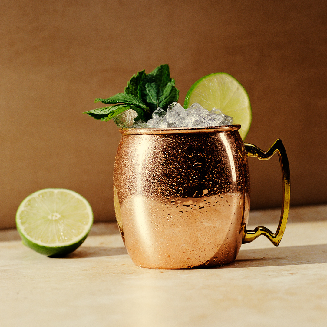 - (1) Combine all ingredients into a copper mule mug with ice.